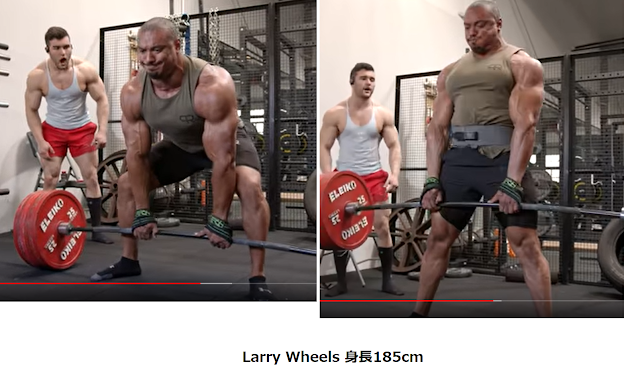 Larry Wheels(身長185cm)がスモウデッドリフトを試した時の様子だと、それほど窮屈ではなさそうなので、この身長でもバランス型の骨格で股関節がスモウ向きならスモウはいけそうな感じがします。と、思ったけど、ストラップ使用でサムレスグリップ&バーがしなっているので、素手でバーがしならない場合は185cmだとやはり窮屈かもしれません。